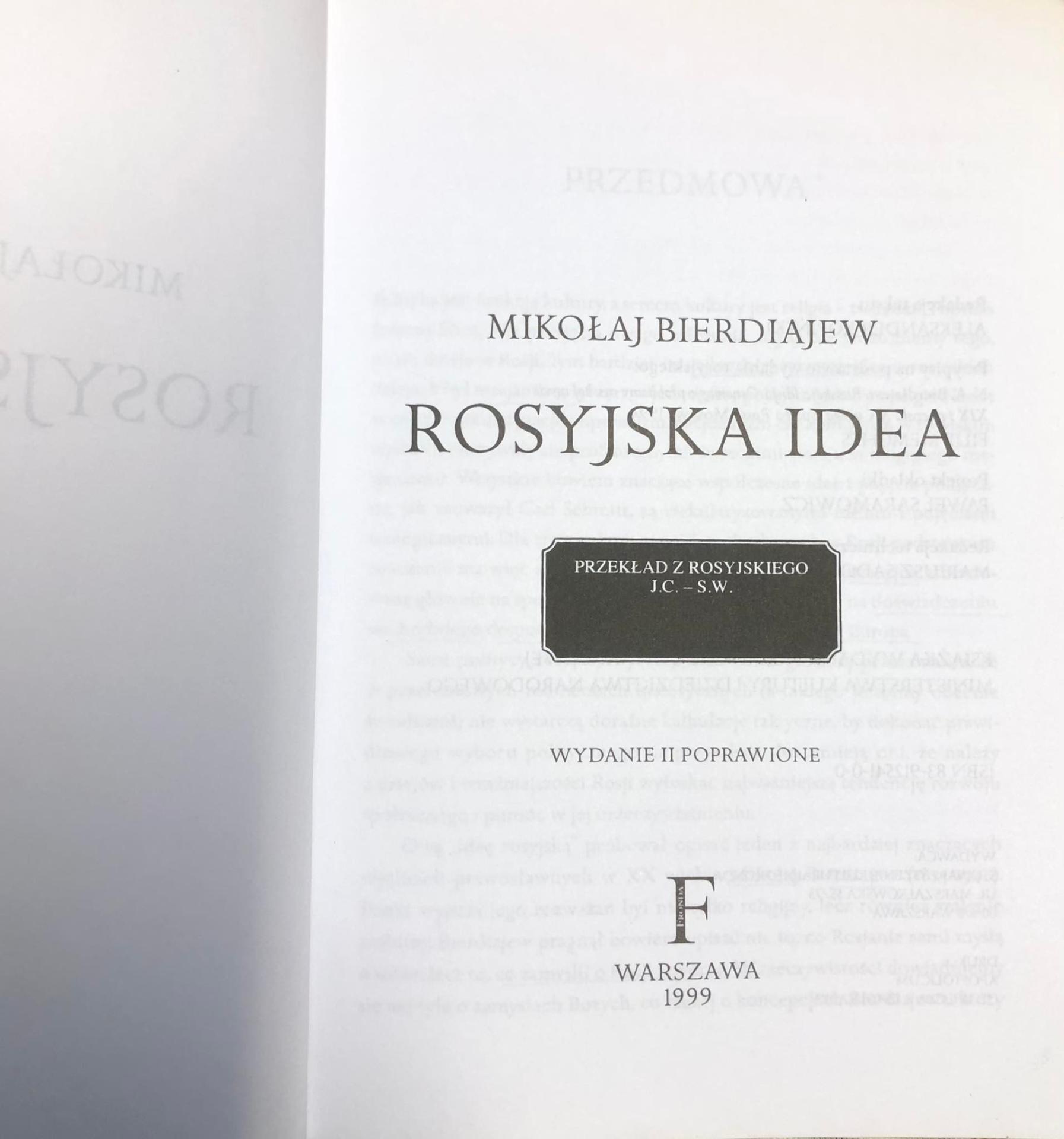 Co się dzieje w Rosji? Co kryje się za hasłem "Idea Rosyjska"? Mikołaj Bierdiajew próbuje w sposób uporządkowany ukazać obraz rozwoju rosyjskiej myśli i rosyjskiego ducha w ciągu kilku ostatnich stuleci. Autor nie tylko ukazuje obraz rzeczywistości Rosji, ale również tworzy własną koncepcję ojczyzny, co nie pozostaje dziś w Rosji bez echa.